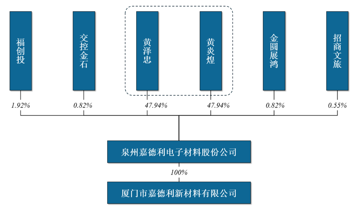 嘉德利成立时的创始人为郭丽珍。2010年8月,郭丽珍将股权平均转让给黄泽忠、黄炎煌,二人成为公司现任控股股东和实际控制人。