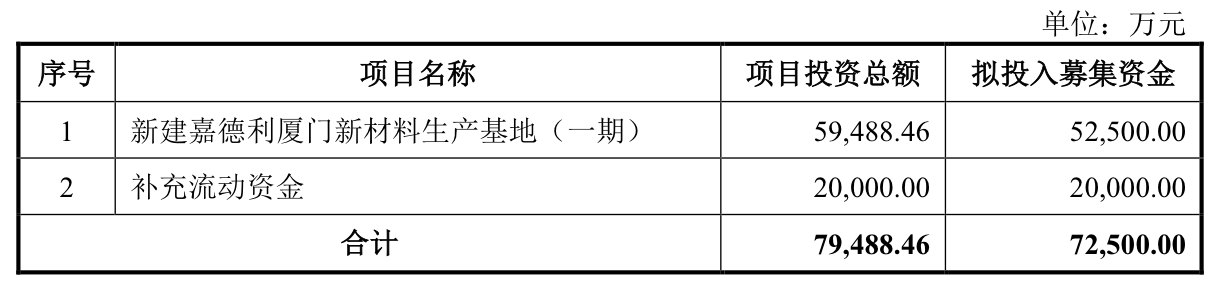 据悉,嘉德利还计划进一步通过IPO募投扩大产能。“新建嘉德利厦门新材料生产基地(一期)”项目建设期3年,达产后将新增年产7500吨BOPP电工膜产能。