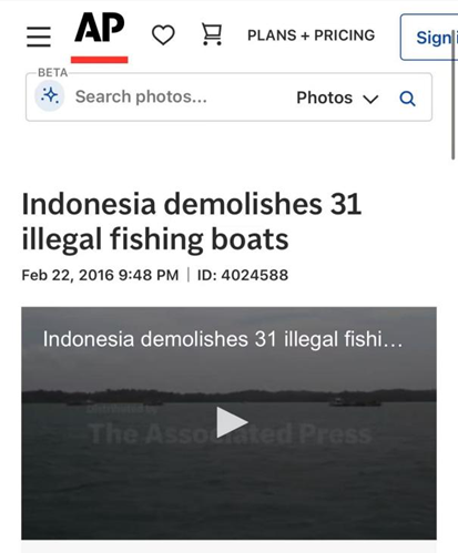 截取网传视频关键帧进行反搜,发现该视频在2016年2月22日就已经出现。美联社等多家媒体当时报道称,该视频展示了“印尼政府炸毁31艘非法渔船”。